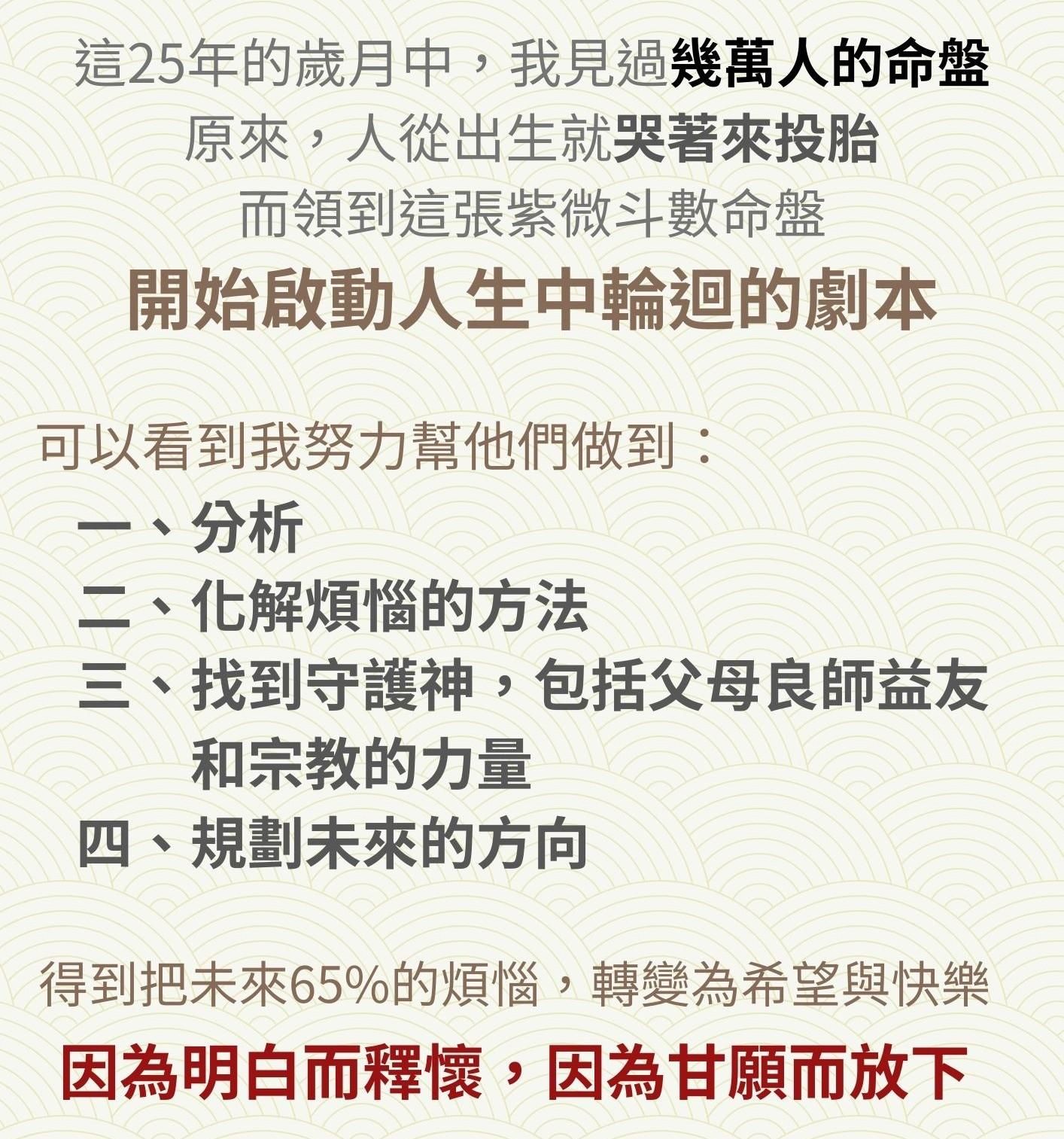 命盤不是宿命,是有化解的方式,是選擇的地圖——用紫微讀懂因果,用行動改變宿命。